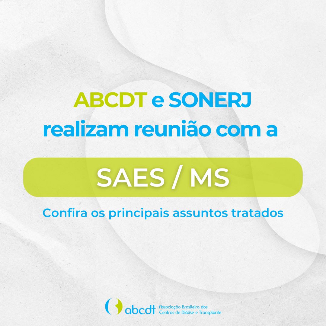 A ABCDT, juntamente com a Sociedade de Nefrologia do Estado do Rio de Janeiro – SONERJ, participou, por videoconferência, de uma reunião nesta segunda-feira (05/12/22) com a Secretária de Atenção Especializada à Saúde / MS, Maira Botelho, para debater soluções para a grave crise financeira que acomete o setor da diálise.
