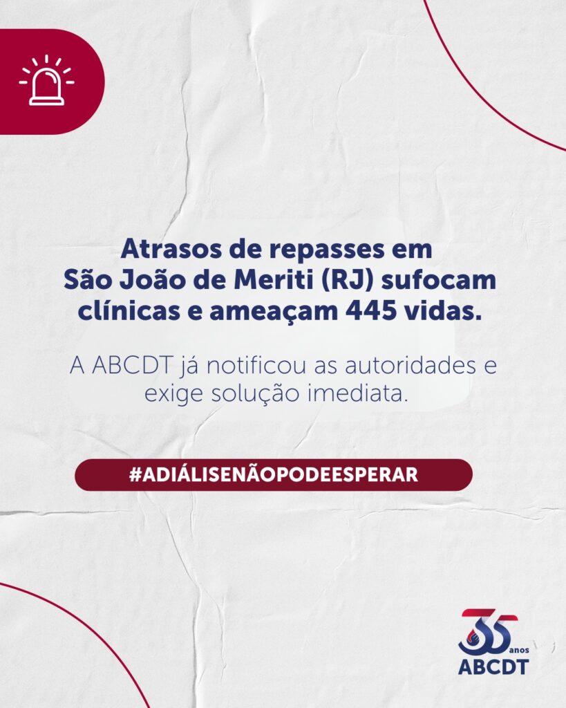 445 pacientes renais de São João de Meriti precisam de socorro imediato. Atrás de cada dado, existe uma pessoa que depende da diálise para sobreviver. Hoje, a ABCDT denuncia mais um atraso de repasses no município, que já soma mais de R$ 800 mil reais em dívidas acumuladas entre o final de 2024 e o […]