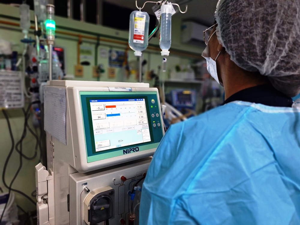 A hemodiálise é o processo no qual uma máquina limpa e filtra o sangue. O procedimento é realizado no HGE para os pacientes que nele estão internados, ou em unidades contratadas pela Secretaria de Estado da Saúde (Sesau) para prestar o serviço com incentivos do Sistema Único de Saúde (SUS).
